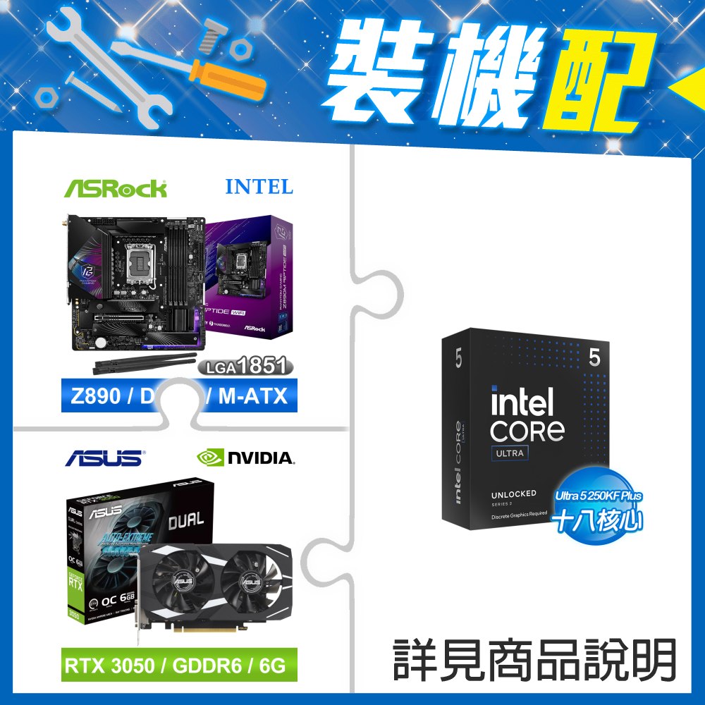 ☆裝機配★ Ultra5 250K Plus+華擎 Z890 Riptide WiFi D5 ATX主機板+華碩 DUAL-RTX3050-O6G 顯示卡