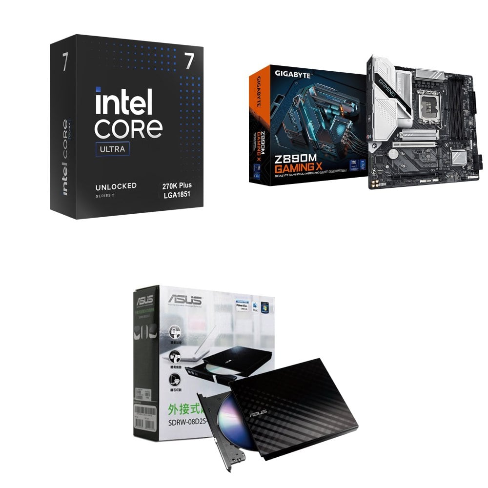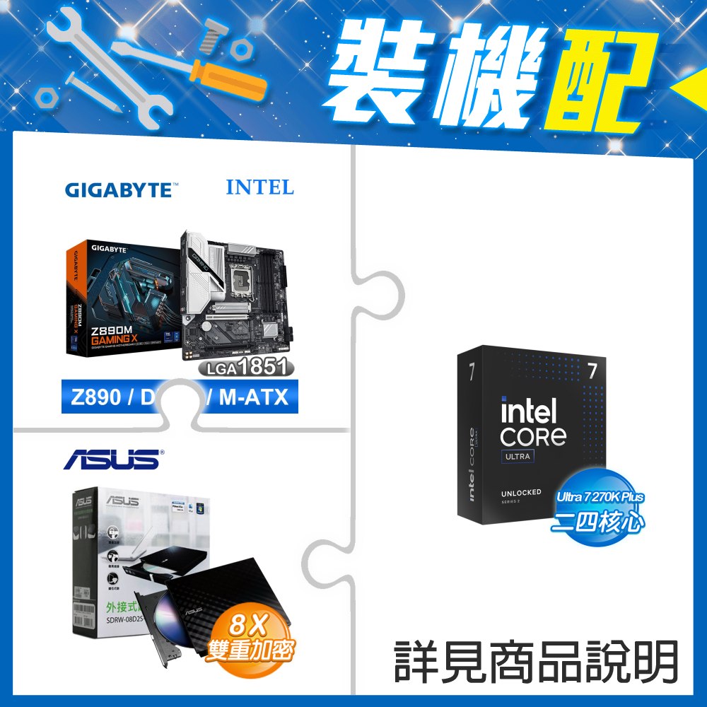 ☆裝機配★ Ultra7 270K Plus+技嘉 Z890M GAMING X D5 MATX主機板+華碩 SDRW-08D2S-U 外接式燒錄機《黑》