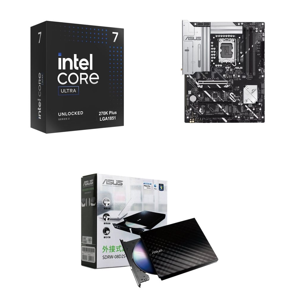☆裝機配★ Ultra7 270K Plus+華碩 Z890 MAX GAMING WIFI7 D5 ATX主機板+華碩 SDRW-08D2S-U 外接式燒錄機《黑》