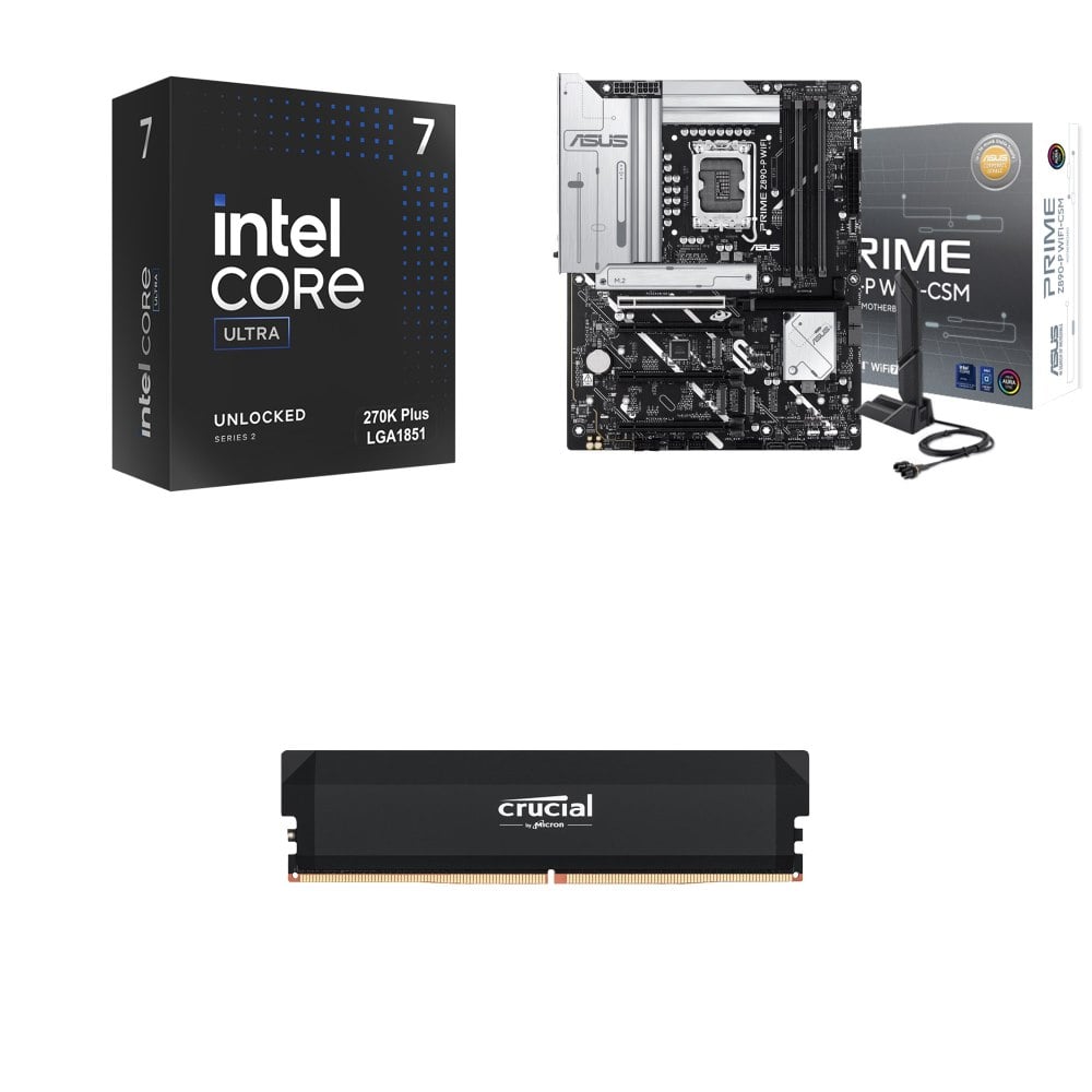 ☆裝機配★ Ultra7 270K Plus+華碩 PRIME Z890M-PLUS WIFI-CSM D5 M-ATX主機板+美光 Crucial PRO DDR5-6000 16G 記憶體