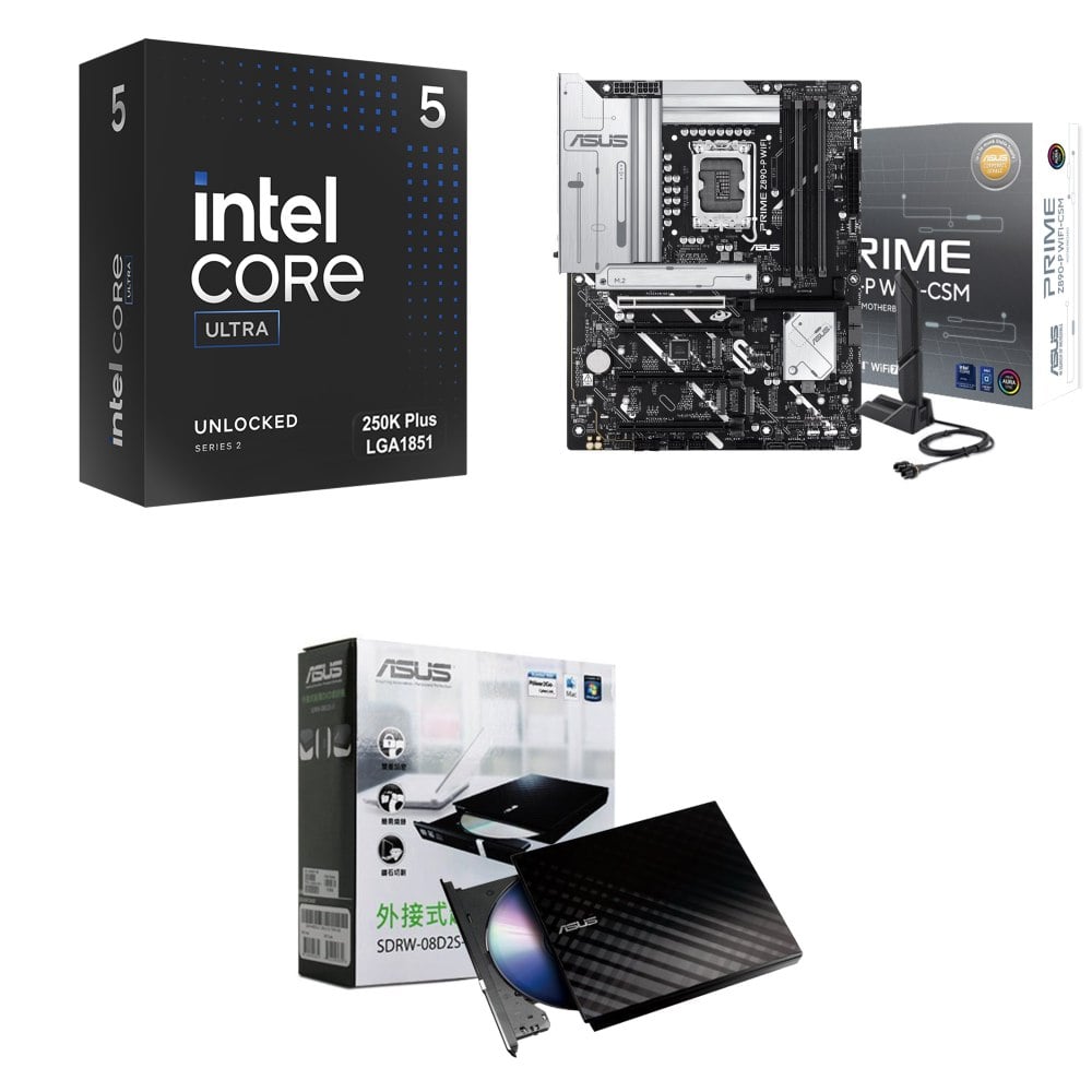 ☆裝機配★ Ultra5 250KF Plus+華碩 PRIME Z890-P WIFI-CSM D5 ATX主機板+華碩 SDRW-08D2S-U 外接式燒錄機《黑》