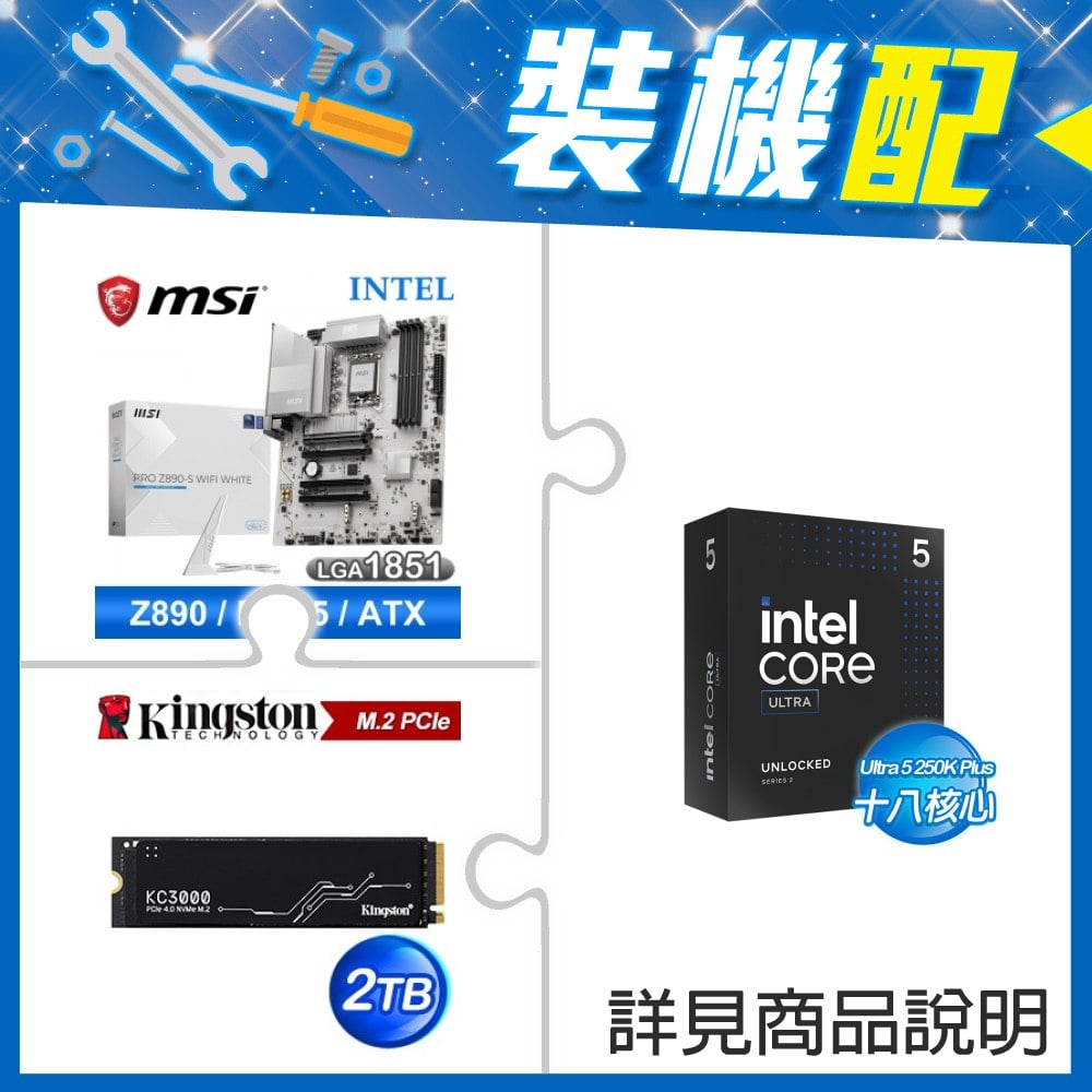 ☆裝機配★ Ultra5 250KF Plus+微星 PRO Z890-S WIFI WHITE D5 ATX主機板+金士頓 KC3000 2TB PCIe 4.0 NVMe M.2 SSD