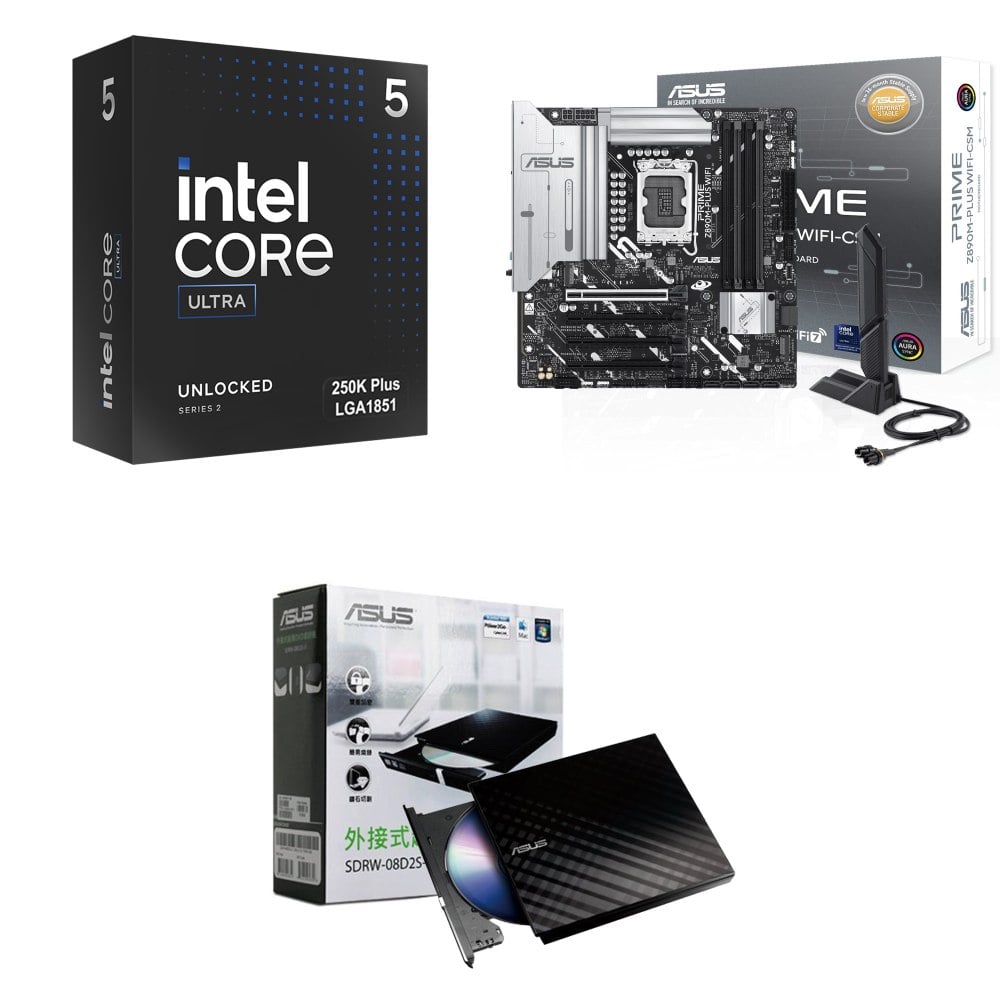 ☆裝機配★ Ultra5 250K Plus+華碩 PRIME Z890M-PLUS WIFI-CSM D5 M-ATX主機板+華碩 SDRW-08D2S-U 外接式燒錄機《黑》