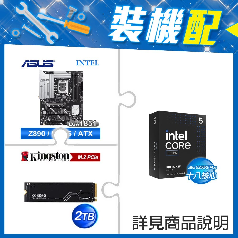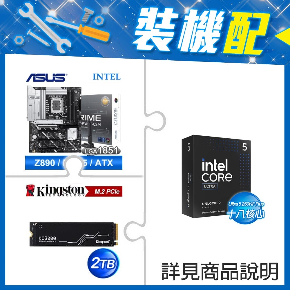 ☆裝機配★ Ultra5 250KF Plus+華碩 PRIME Z890-P WIFI-CSM D5 ATX主機板+金士頓 KC3000 2TB PCIe 4.0 NVMe M.2 SSD