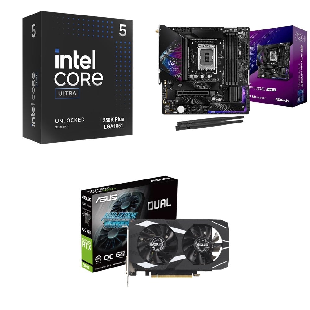 ☆裝機配★ Ultra5 250K Plus+華擎 Z890M Riptide WiFi D5 MATX主機板+華碩 DUAL-RTX3050-O6G 顯示卡