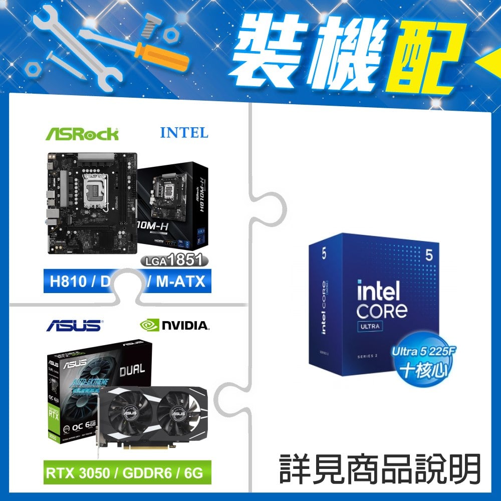 ☆裝機配★ Core U5 225F+華擎 H810M-H MATX主機板+華碩 DUAL-RTX3050-O6G 顯示卡