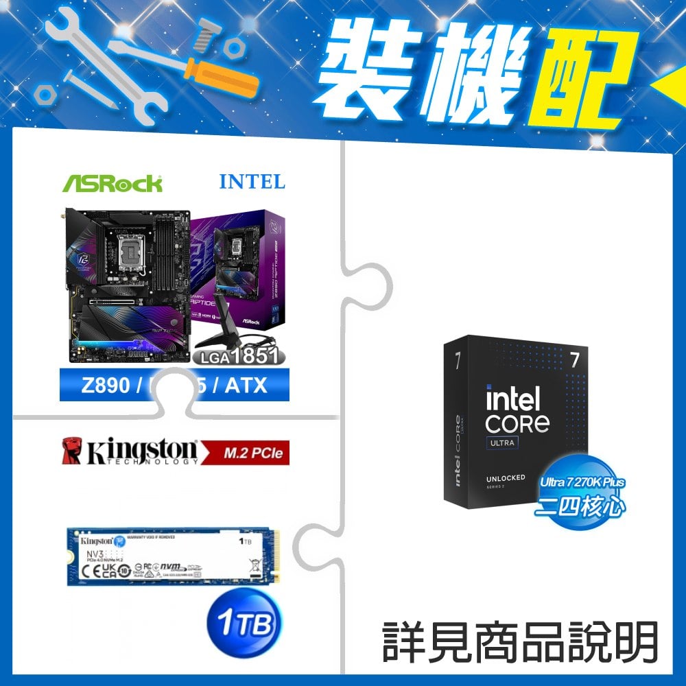 ☆裝機配★ Ultra7 270K Plus+華擎 Z890 Riptide WiFi D5 ATX主機板+金士頓 NV3 1TB M.2 PCIe SSD