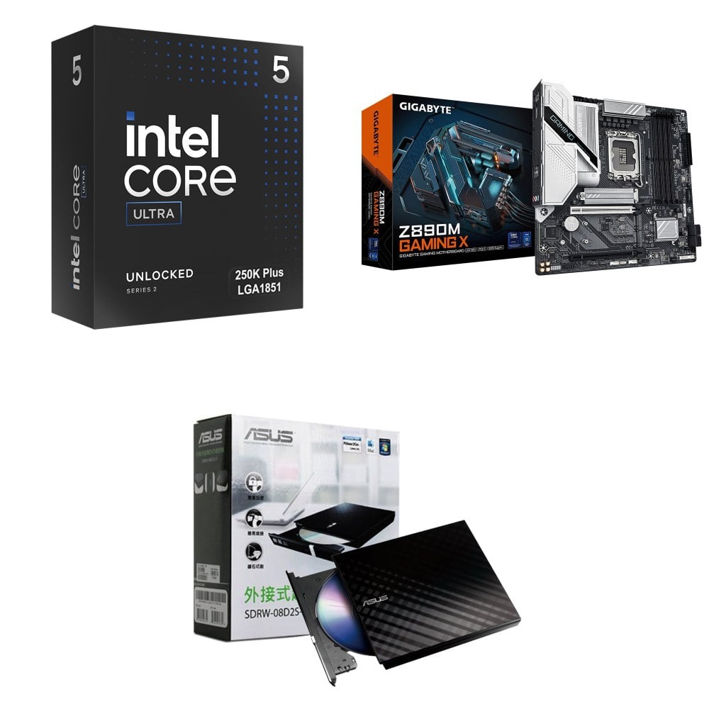 ☆裝機配★ Ultra5 250K Plus+技嘉 Z890M GAMING X D5 MATX主機板+華碩 SDRW-08D2S-U 外接式燒錄機《黑》