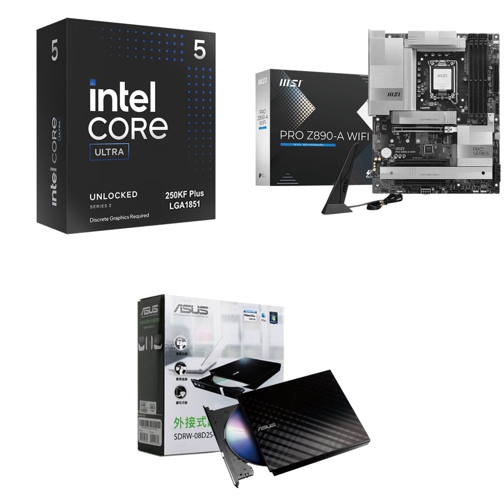 ☆裝機配★ Ultra5 250KF Plus+微星 PRO Z890-A WIFI D5 ATX主機板+華碩 SDRW-08D2S-U 外接式燒錄機《黑》