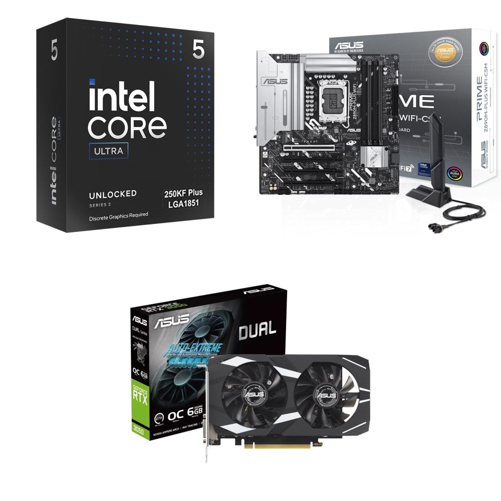 ☆裝機配★ Ultra5 250K Plus+華碩 PRIME Z890M-PLUS WIFI-CSM D5 M-ATX主機板+華碩 DUAL-RTX3050-O6G 顯示卡
