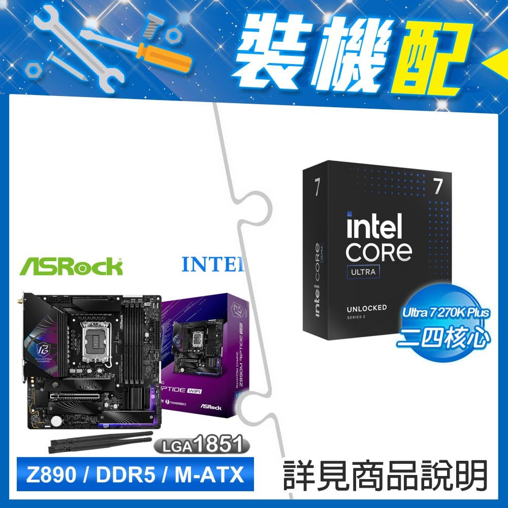 ☆裝機配★ Ultra7 270K Plus+華擎 Z890M Riptide WiFi D5 MATX主機板