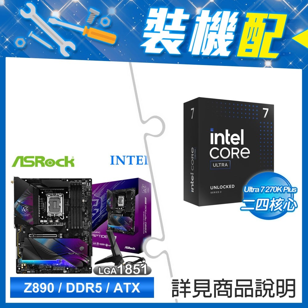 ☆裝機配★ Ultra7 270K Plus+華擎 Z890 Riptide WiFi D5 ATX主機板