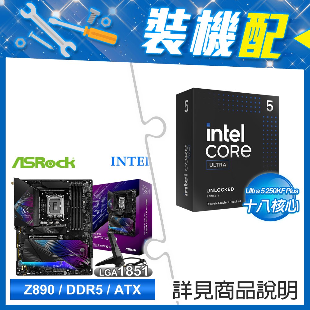 ☆裝機配★ Ultra5 250KF Plus+華擎 Z890 Riptide WiFi D5 ATX主機板