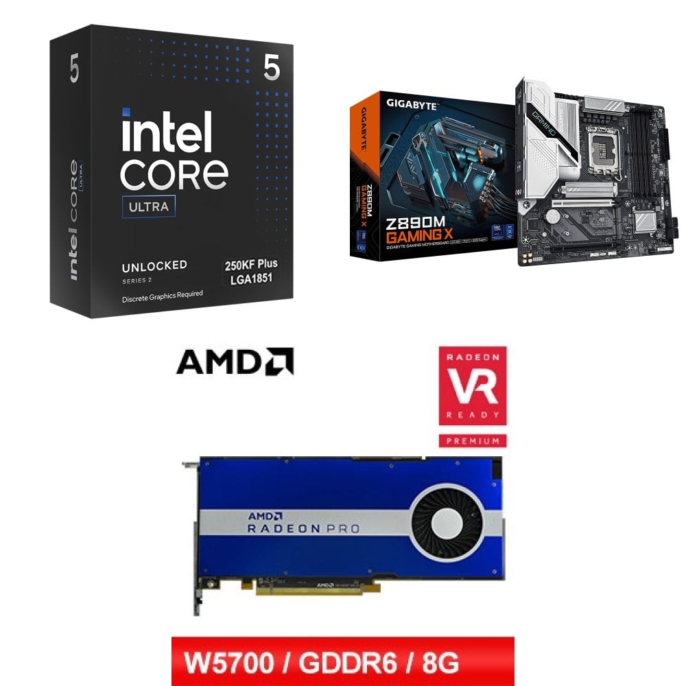 ☆裝機配★ Ultra5 250K Plus+技嘉 Z890M GAMING X D5 MATX主機板+AMD RadeonPro W5700 8G 256bit專業繪圖卡