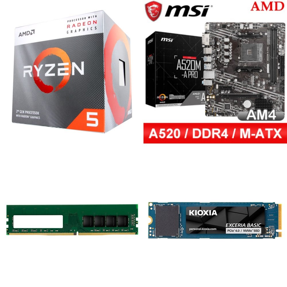 ☆期間限定★ AMD Ryzen 5 3400G SR1+微星 A520M-A PRO M-ATX主機板+威剛 DDR4-3200 16G 記憶體+鎧俠 Exceria Basic 1TB Gen4 M.2 SSD