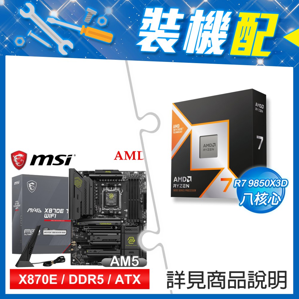☆裝機配★ AMD R7 9850X3D+微星 MAG X870E TOMAHAWK WIFI ATX主機板