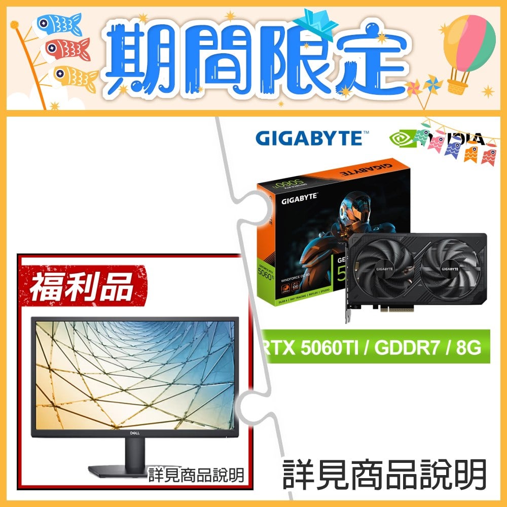 ☆期間限定★ 技嘉 RTX 5060 Ti WINDFORCE OC 8G 顯示卡+DELL SE2222H 四年保 21.5吋