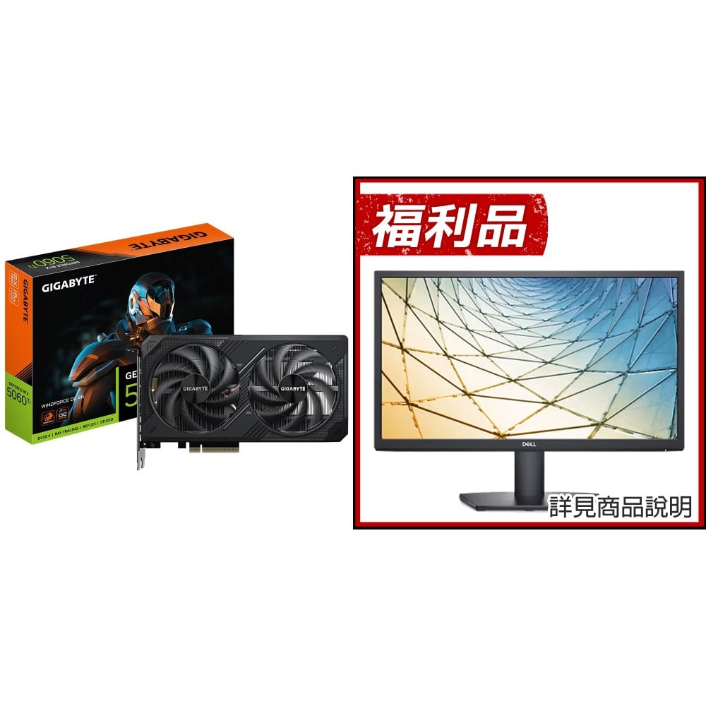 ☆期間限定★ 技嘉 RTX 5060 Ti WINDFORCE OC 8G 顯示卡+DELL SE2222H 四年保 21.5吋
