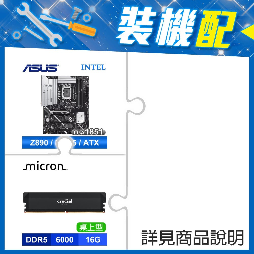 ☆裝機配★ Ultra5 250KF Plus+華碩 PRIME Z890M-PLUS WIFI-CSM D5 M-ATX主機板+美光 Crucial PRO DDR5-6000 16G 記憶體