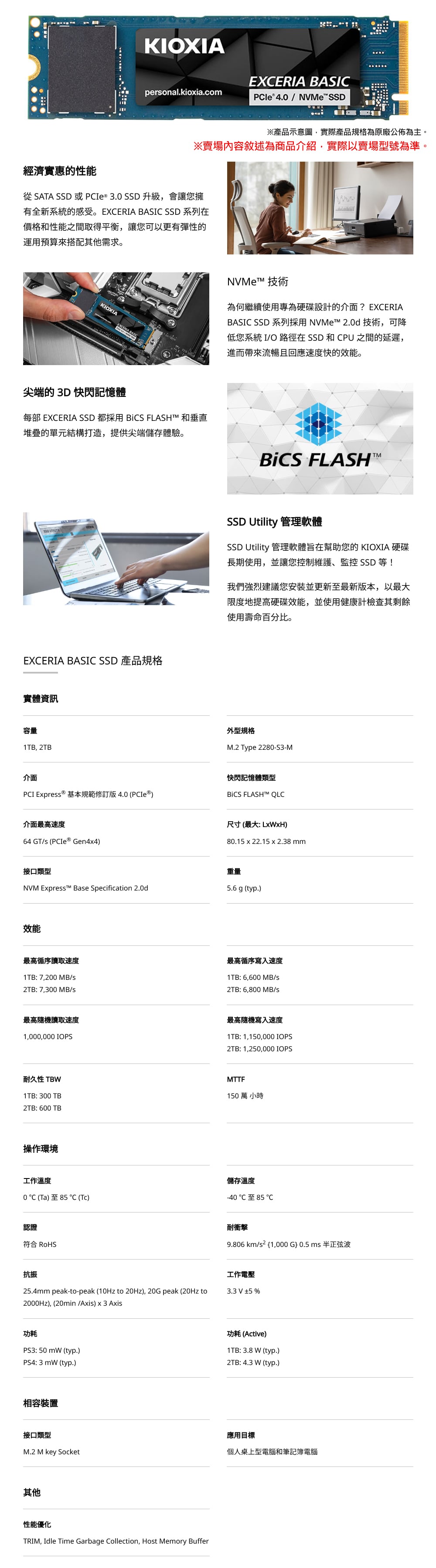 KIOXIA 鎧俠 Exceria Basic 1TB Gen4x4 M.2 PCIe(2280) SSD(讀7200/寫6600)