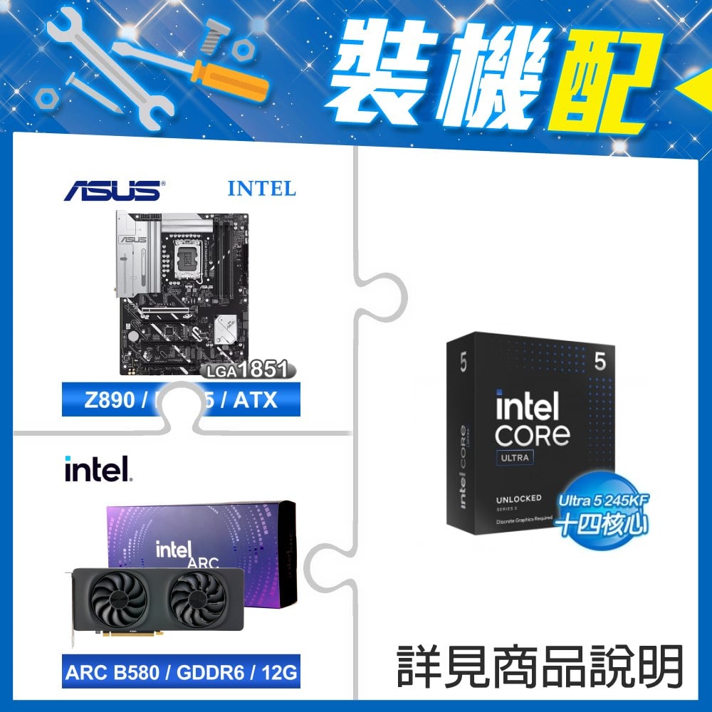 ☆裝機配★ Core U5 245K+華碩 PRIME Z890-P WIFI-CSM D5 ATX主機板+Intel Arc B580 12G 20 Core 顯示卡