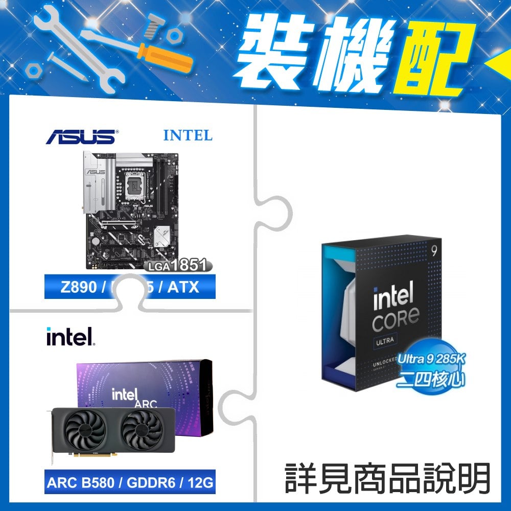 ☆裝機配★ Core U9 285K+華碩 PRIME Z890-P WIFI-CSM D5 ATX主機板+Intel Arc B580 12G 20 Core 顯示卡