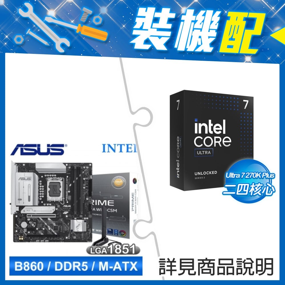 ☆裝機配★ Ultra7 270K Plus+華碩 PRIME B860M-A WIFI-CSM D5 MATX主機板