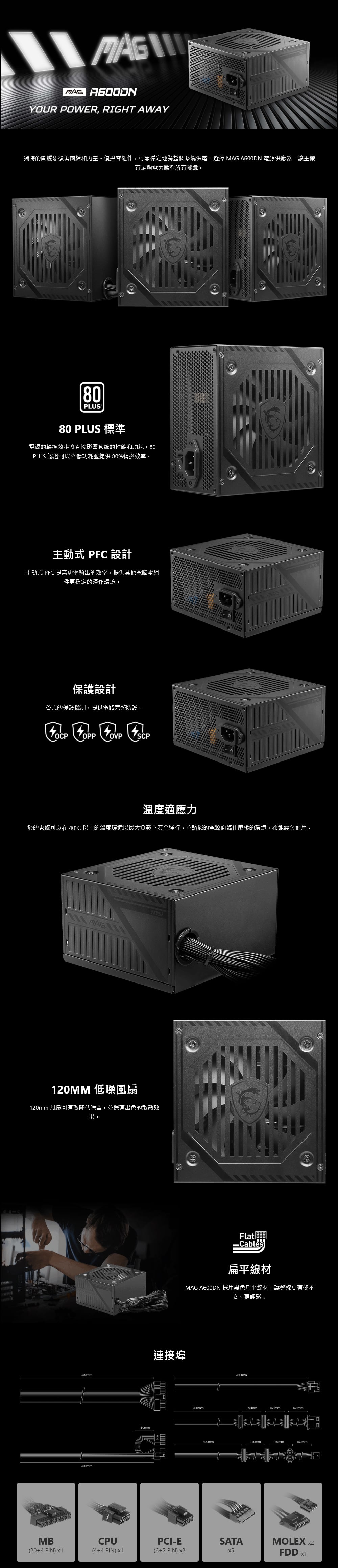 MSI 微星 MAG A600DN 白牌 直出 電源供應器(3年保)