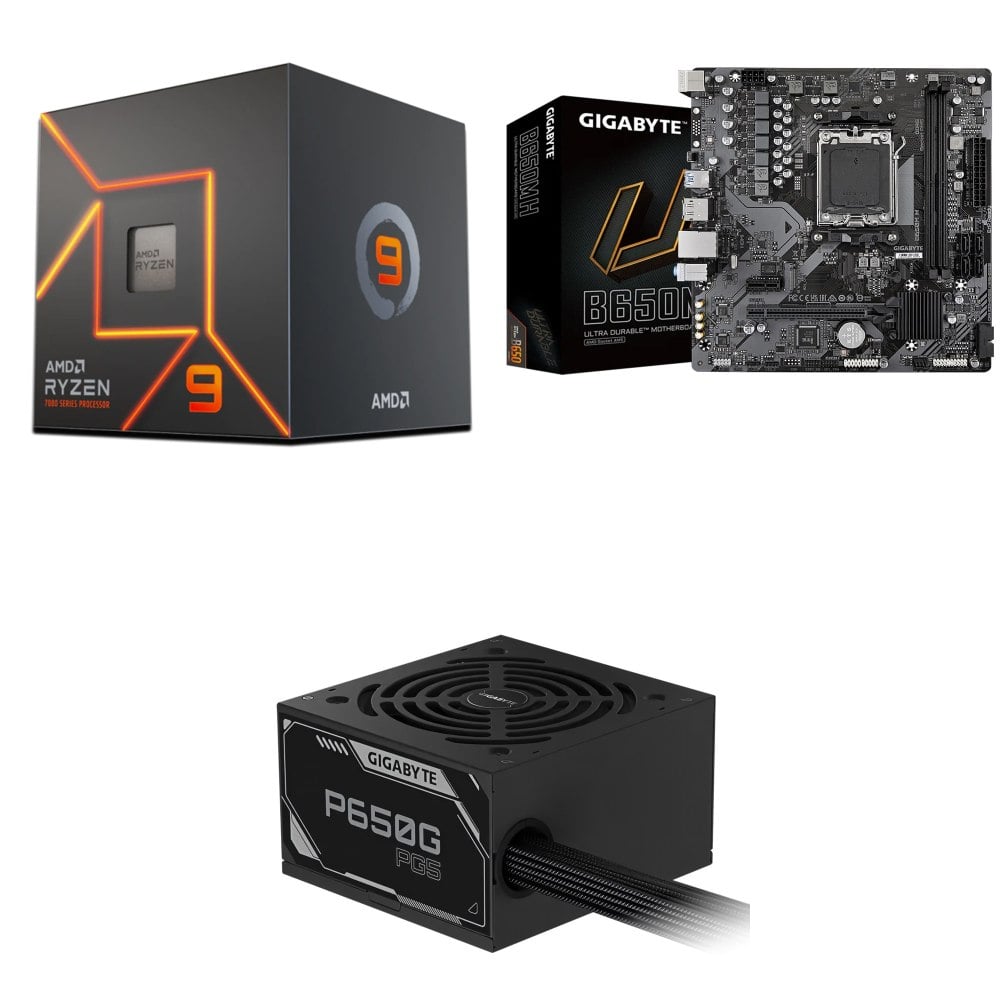 ☆期間限定★ AMD R9 7900+技嘉 B650M H M-ATX主機板+技嘉 P650G PG5 金牌 直出 ATX3.1 電源供應器
