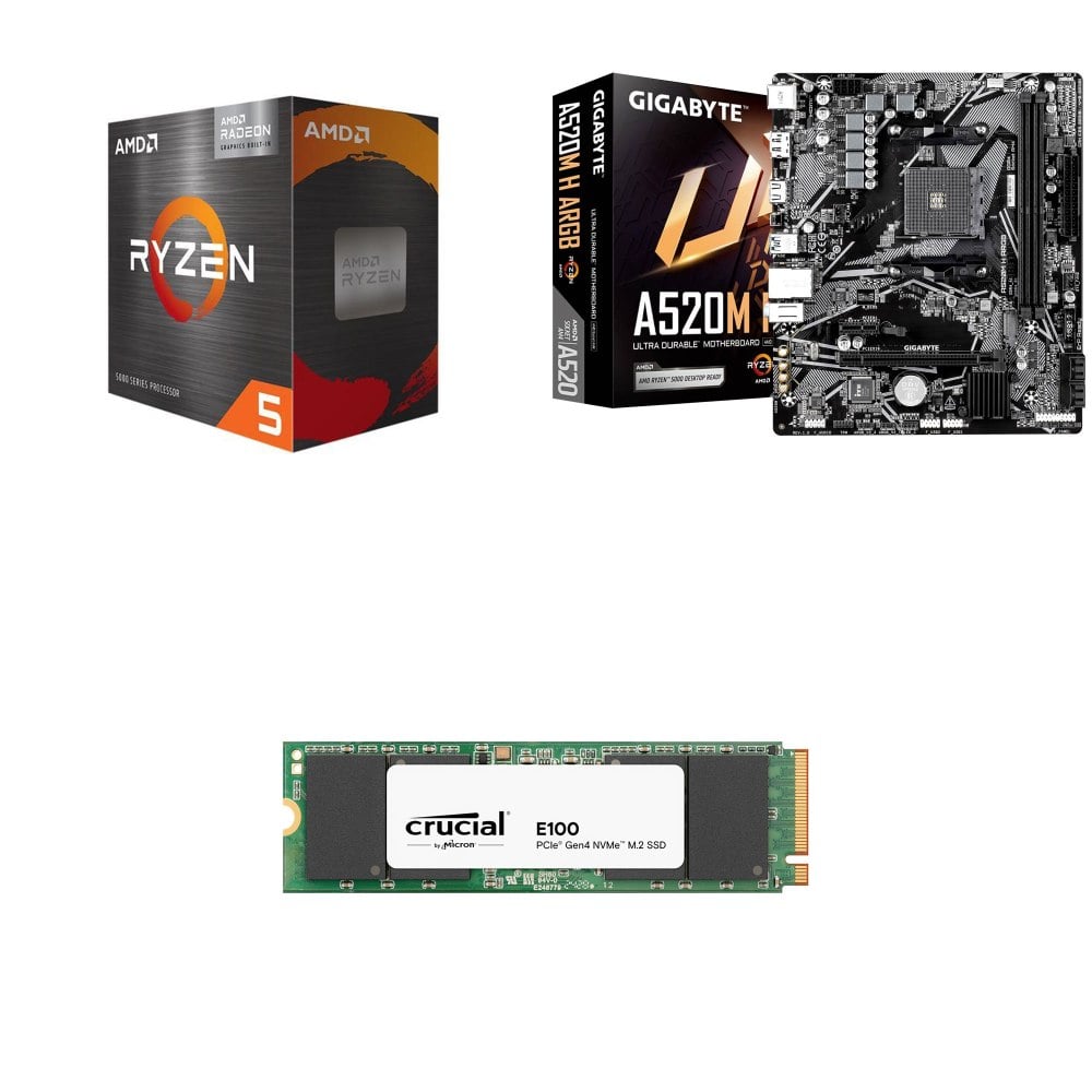 ☆期間限定★ AMD R5 5500GT+技嘉 A520M H ARGB MATX 主機板+美光 Crucial E100 1TB M.2 PCIe SSD(散裝)