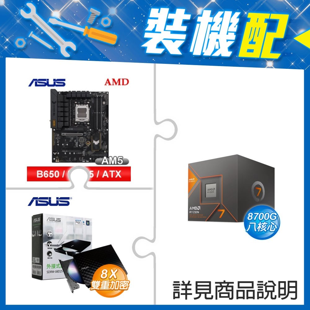 ☆裝機配★ AMD R7 8700G+華碩 TUF GAMING B650-E WIFI ATX主機板+華碩 SDRW-08D2S-U 外接式燒錄機《黑》