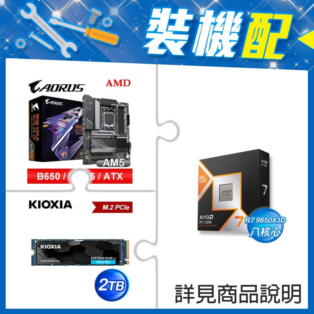 ☆裝機配★ AMD R7 9850X3D+技嘉 B650 AORUS ELITE AX V2 D5 ATX主機板+鎧俠 EXCERIA PLUS G3 2TB PCIe Gen4x4 SSD
