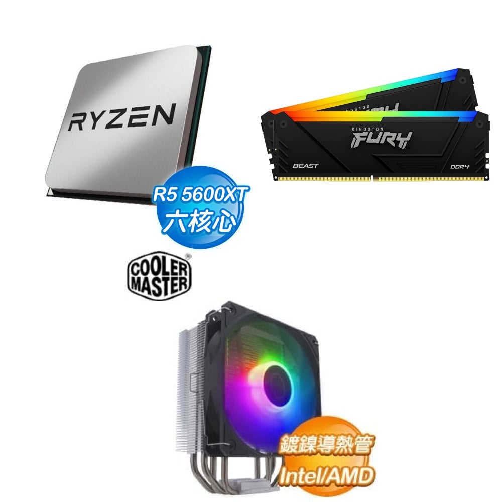 ☆期間限定★ AMD R5 5600XT MPK+金士頓 RGB 獸獵者 D4 3600 8G*2 CL17 黑 記憶體+酷碼 Hyper 212 Spectrum V3 單風扇 散熱器