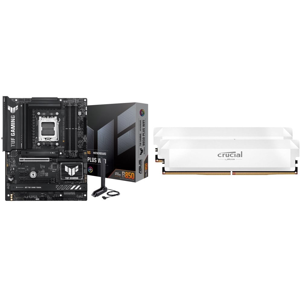 ☆期間限定★ 華碩 TUF GAMING B850-PLUS WIFI ATX主機板+美光 Crucial PRO DDR5 6000 64G (32G*2)白 記憶體