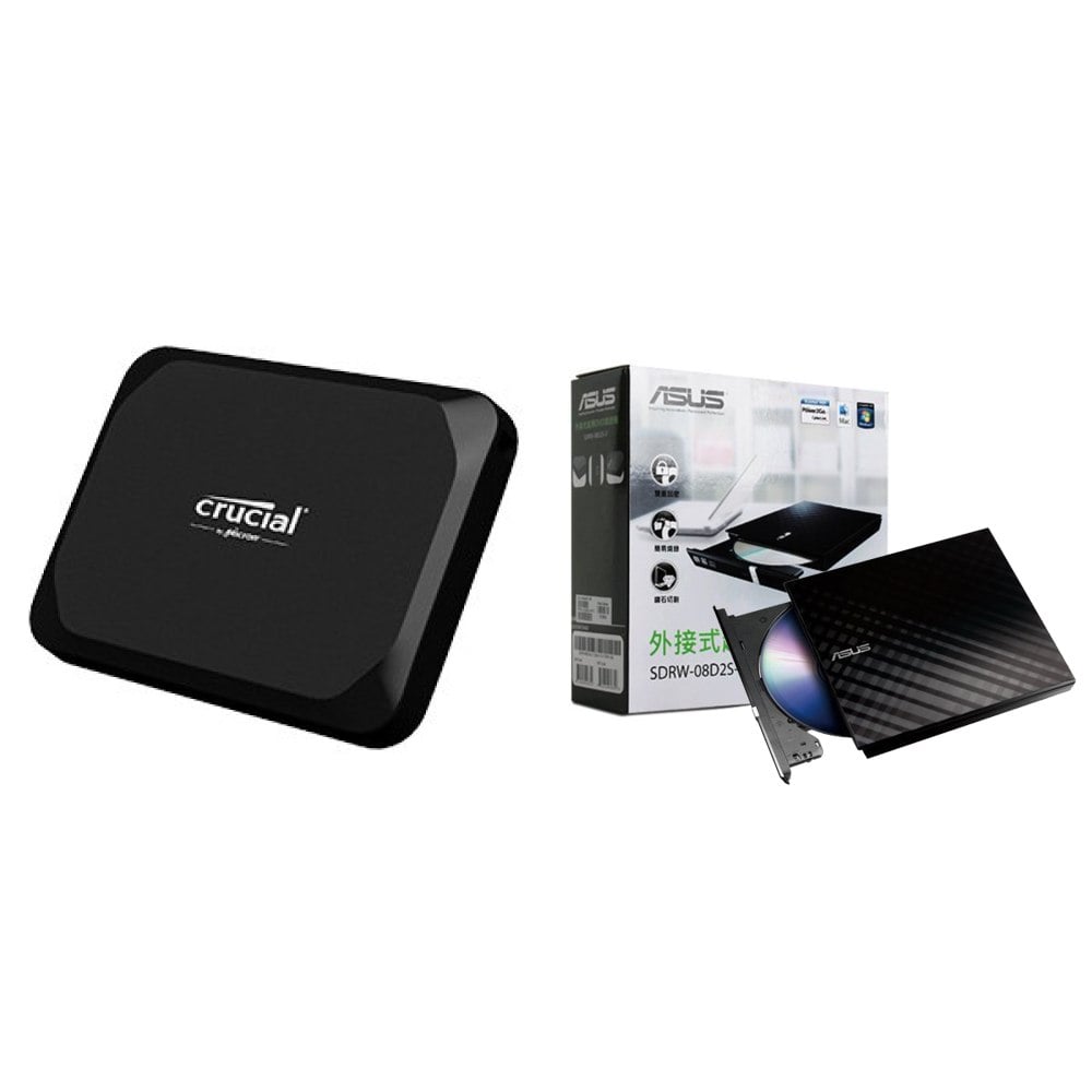 ☆期間限定★ 美光 Crucial X9 1TB U3.2Type C外接式SSD+華碩 外接燒錄器《黑》(SDRW-08D2S-U)