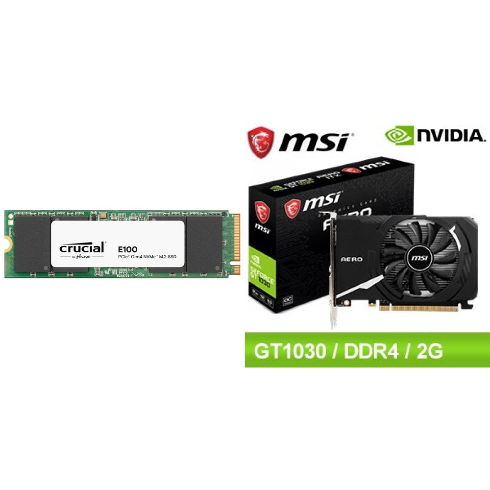 ☆期間限定★ 美光 Crucial E100 1TB M.2 PCIe 4.0 SSD+微星 GT 1030 AERO 2GD4 OCV1 顯示卡