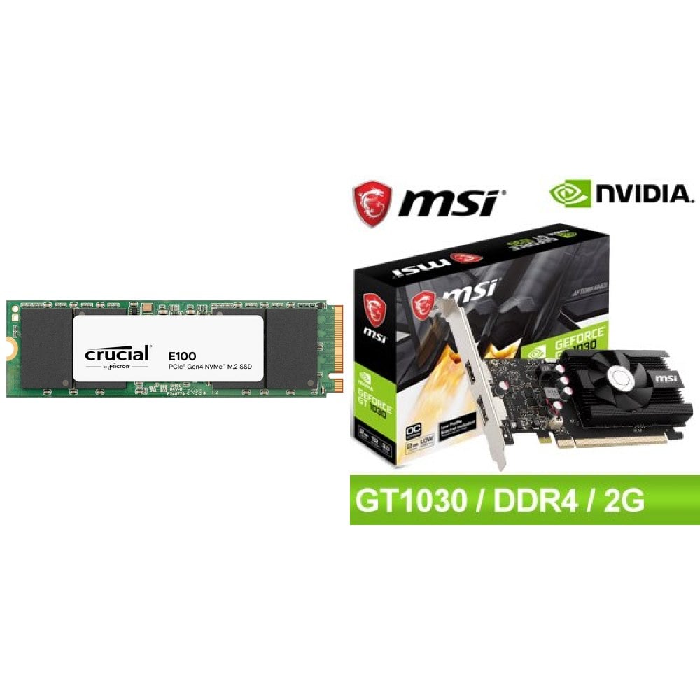 ☆期間限定★ 美光 Crucial E100 1TB M.2 PCIe 4.0 SSD+微星 GT 1030 2GD4 LP OC 顯示卡