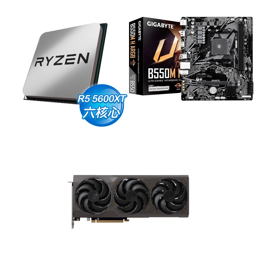 ☆期間限定★ AMD R5 5600XT MPK+技嘉 B550M H ARGB MATX 主機板+藍寶石 黑鑽版 RX 7650 GRE GAMING OC 8GB 顯示卡★送AMD托特包