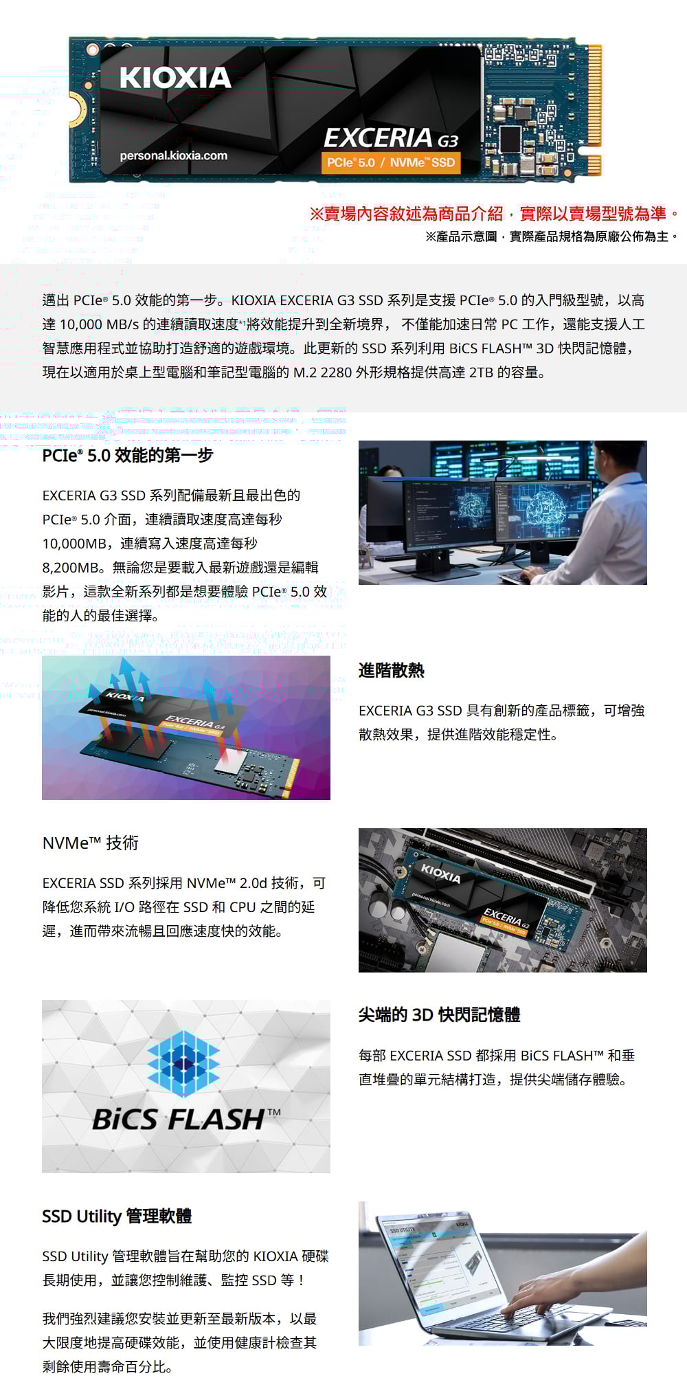 KIOXIA 鎧俠 Exceria G3 1TB Gen5x4 M.2 PCIe(2280) SSD(讀10000/寫8900)