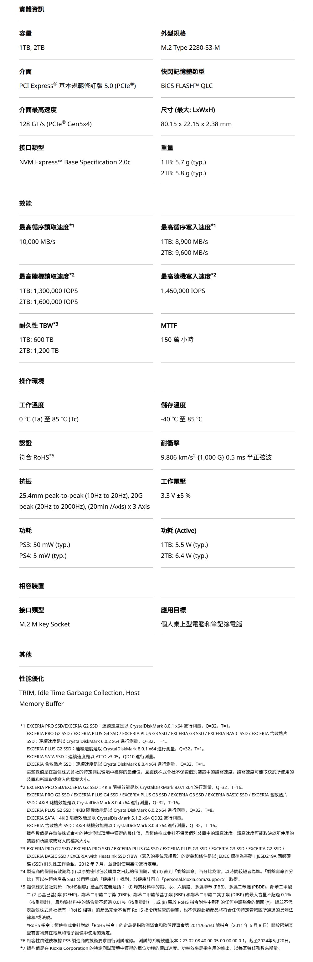 KIOXIA 鎧俠 Exceria Plus G4 2TB Gen5x4 M.2 2280 PCIe SSD(讀10000/寫8200)