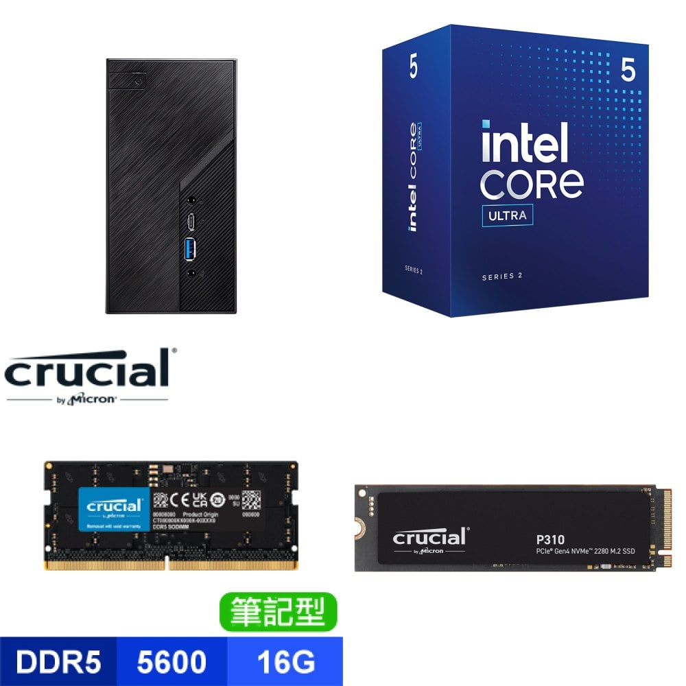 ☆期間限定★ 華擎 DeskMini B860 INTEL迷你準系統+Intel Core Ultra 5 225+美光 Crucial NB DDR5 5600 16G BULK記憶體+美光 Crucial P310 500G Gen4 M.2 SSD BULK ★送華擎 DeskMini WIFI+BT4.2 無線模組+華擎 DeskMini VESA 後背安裝支架+PC-cillin 2025 雲端版 一年一台