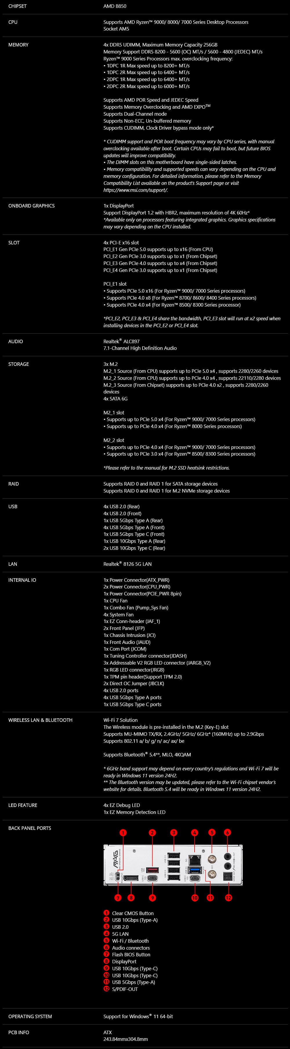 MSI 微星 MAG B850 TOMAHAWK MAX WIFI II AM5主機板(ATX/3+2年保)