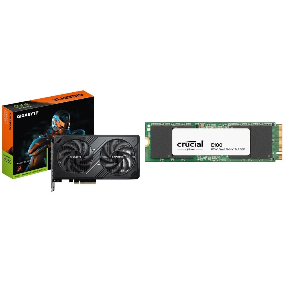 ☆期間限定★ 技嘉 RTX 5060 WINDFORCE 8G 顯示卡+美光 Crucial E100 1TB M.2 PCIe 4.0 SSD