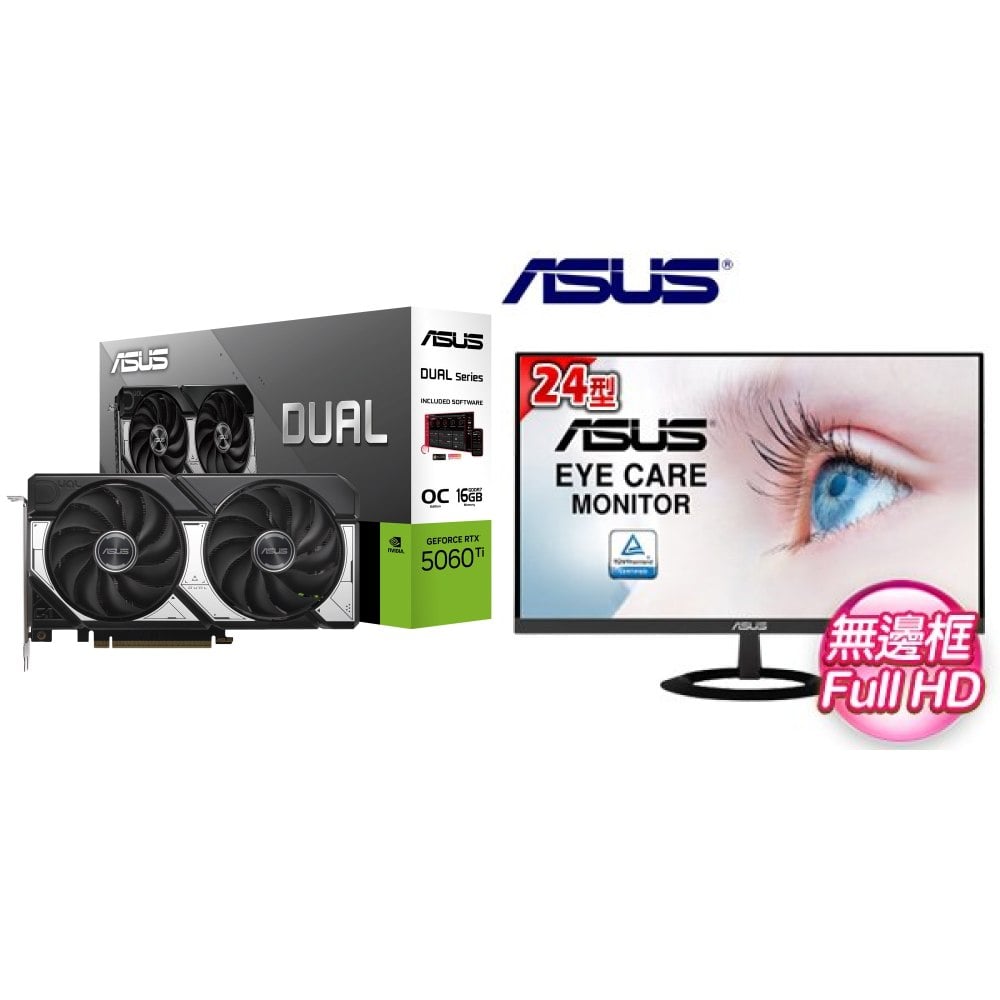 ☆期間限定★ 華碩 DUAL-RTX5060TI-O16G 顯示卡+華碩 VZ249HE 24型 IPS 低藍光螢幕