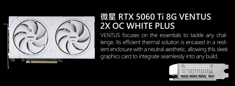 - 顯示卡:微星 RTX 5060 Ti 8G VENTUS 2X OC WHITE PLUS