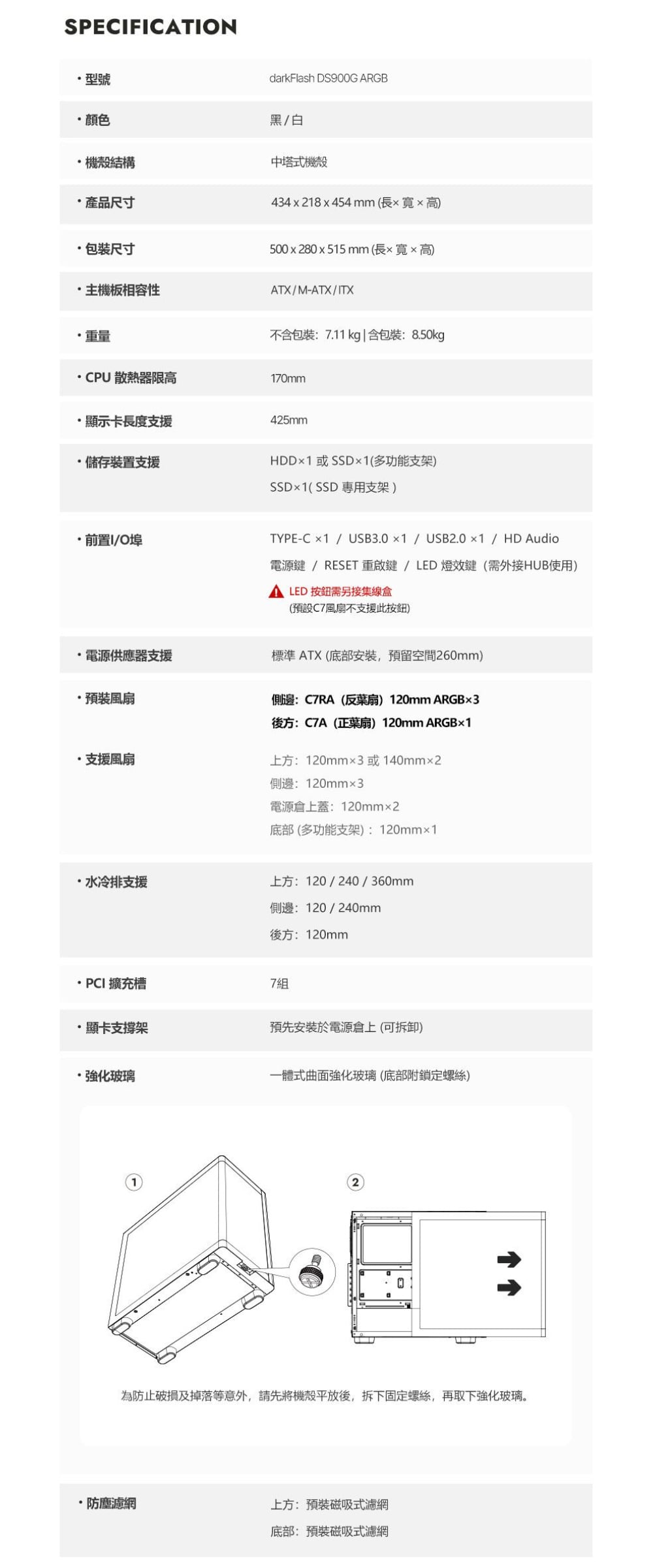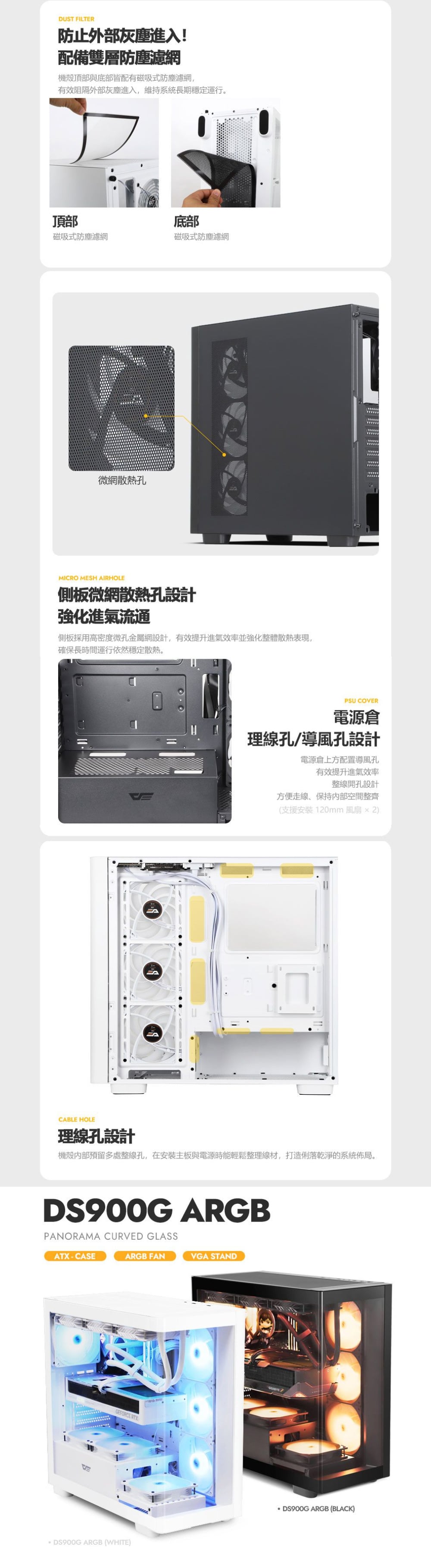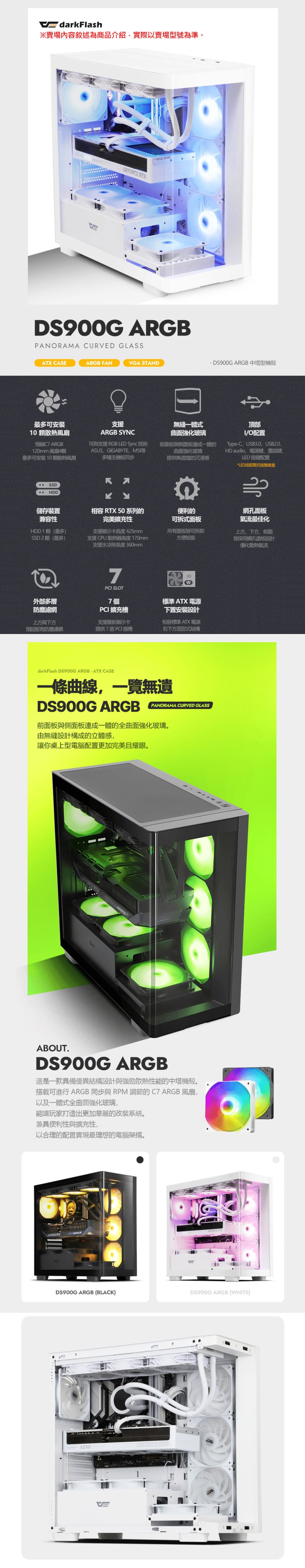 darkFlash 大飛【DS900G】全景玻璃透側 顯卡42.5 ATX機殼《白》