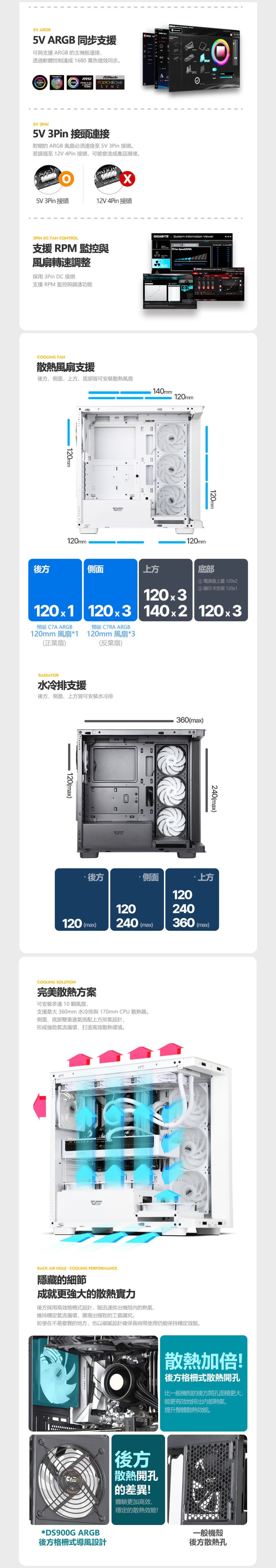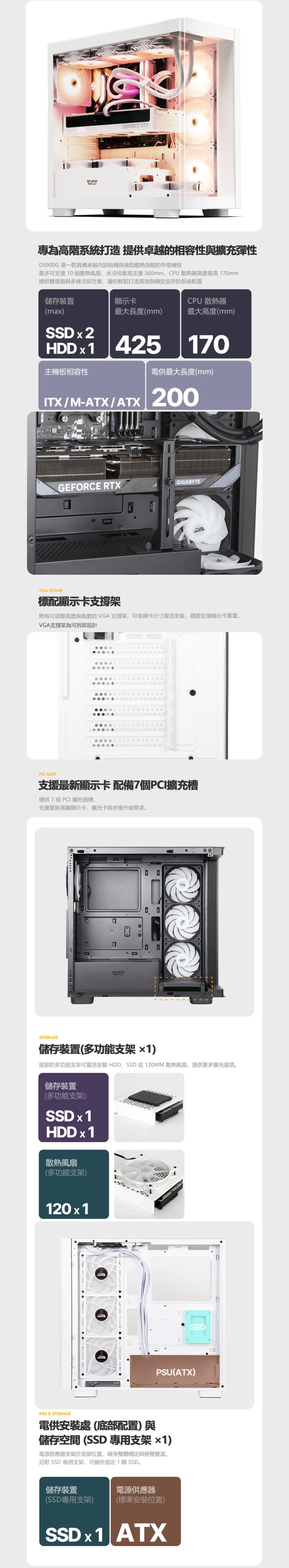 - 支援 360mm 水冷及 170mm 空冷高度