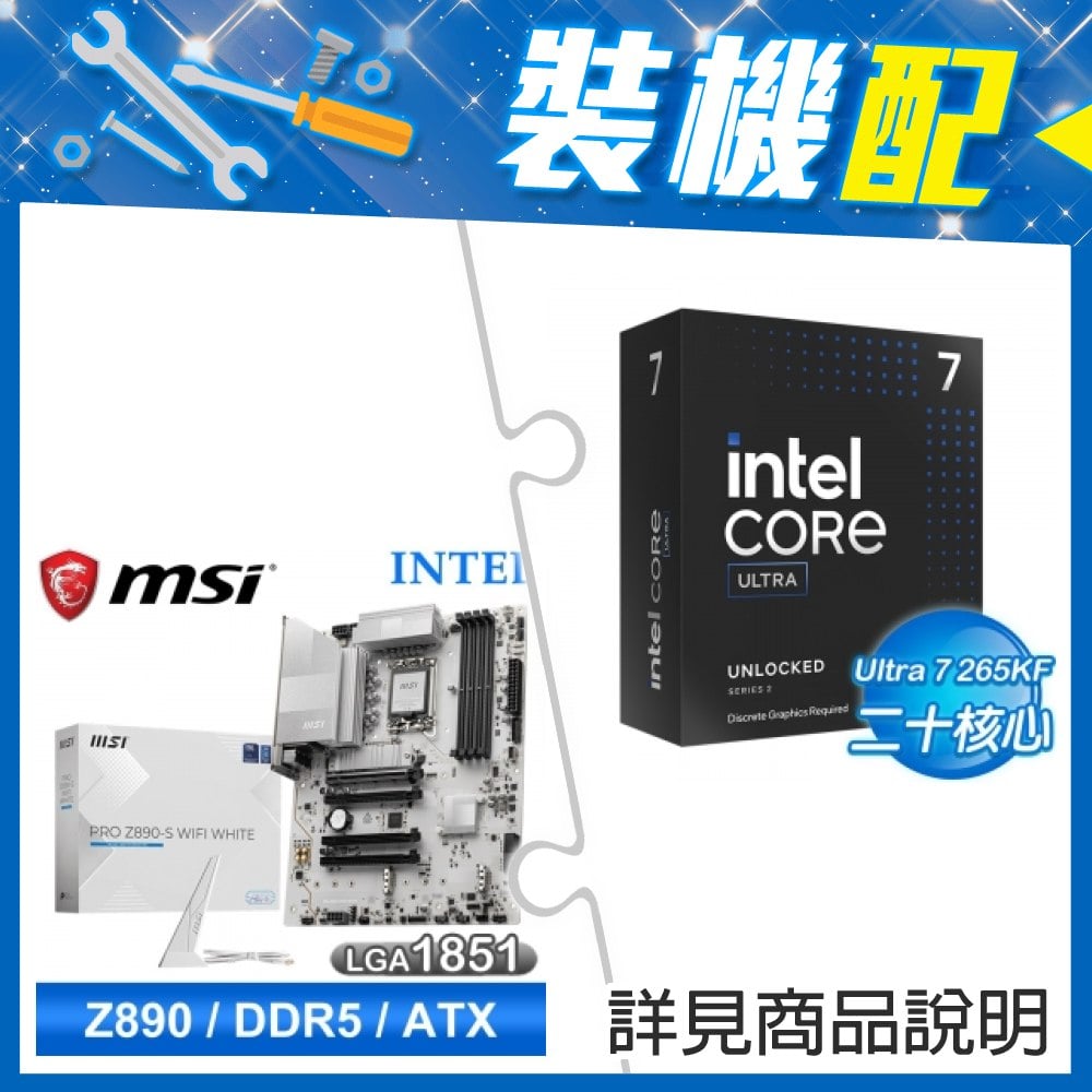 ☆裝機配★ Core U7 265KF+微星 PRO Z890-S WIFI WHITE D5 ATX主機板