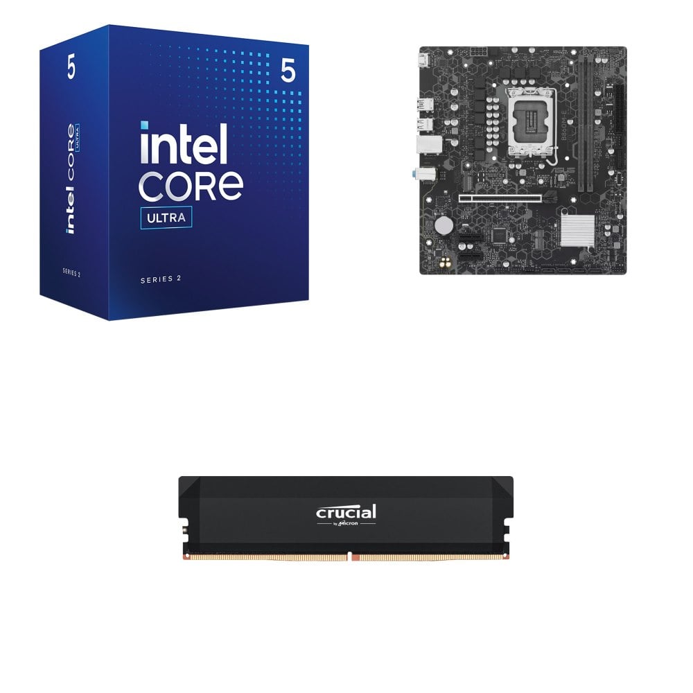 ☆期間限定★ Intel Core Ultra 5 225+華碩 B860M-E-CSM D5 MATX 主機板+美光 Crucial PRO DDR5 6000 16G CL36 黑 記憶體(X2)