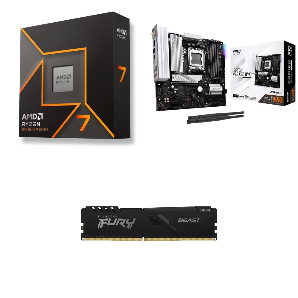 ☆期間限定★ AMD R7 9700X+華擎 B650M Pro X3D WiFi MATX 主機板+金士頓 獸獵者 D5 5600 16G CL36 黑 記憶體